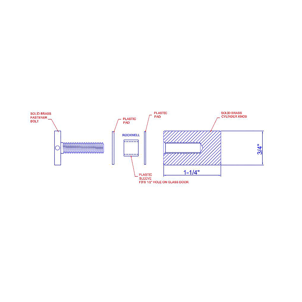 Solid Brass Single Sided Cylindrical Shower Door Knob